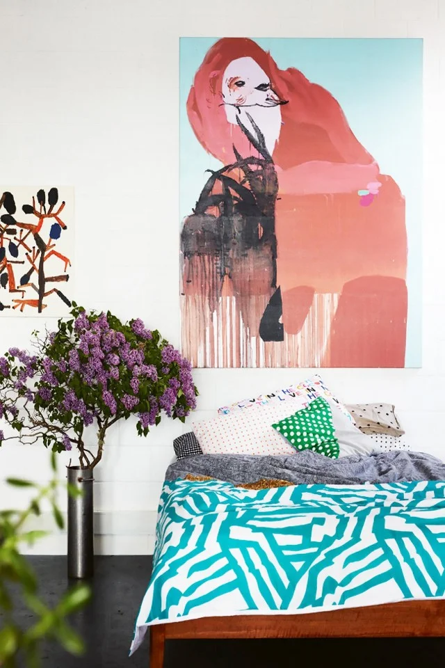 Instead of going for neutral colors, You can also try some bright colors in the small room. And place only one flower vase instead of two. This will add more room to the space which makes it stand out.