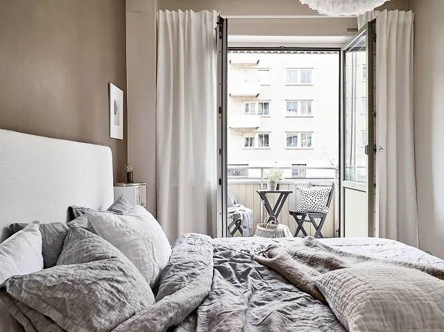 Have a very light and clear window covering to allow in the lights. This will add more light in the room. This make the beautiful effect in the room. Keep your bed above the floor and on a height. Elevation will make the room look bigger.