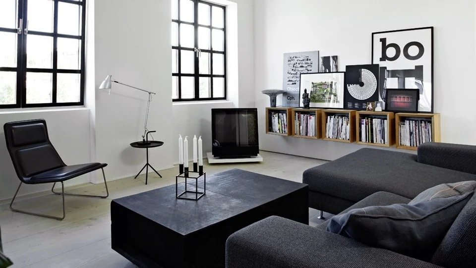 To avoid the strict look of black & white use huge windows. Shades of silver, gray and slate will aid.